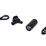 Varnejša vožnja v temi in dežju s kompaktno sprednjo svetilko iz letalskega aluminija z LED CREE XPG400 in svetlobnim tokom 350 lm. Ponuja 4 načine osvetlitve (100 %, 75 %, 50 %, stroboskop), vodoodpornost IPX6, polnjenje prek USB in gumirano stikalo. Enostavna montaža na krmilo s priloženim nosilcem.