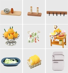 Uživajte v podrobnem izdelovanju kuhinje z vsemi potrebnimi elementi za realistično miniaturo.