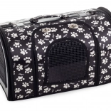 Ta elegantna črna torba je idealna za potovanja z avtobusom, vlakom ali k veterinarju. Zahvaljujoč trem zadrgnjenim vstopom (dva stranska in en sprednji) ter kovinskemu zavarovanju glavnega vhoda zagotavlja enostavno rokovanje in varnost vašega ljubljenčka. Vgrajen prezračevalni sistem z mrežico nudi dovolj svežega zraka in dober pregled nad živaljo.
