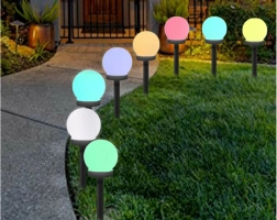 Sončne vrtne RGB krogle so izdelane iz trpežnih materialov in vsebujejo LED diodo, ki sveti v različnih barvah in ustvarja RGB učinek. Te svetilke se čez dan polnijo preko sončne plošče in uporabljajo shranjeno energijo za večerno osvetlitev. Prednost je njihova neodvisnost od tradicionalnih virov energije, zahvaljujoč vgrajenim solarnim panelom, ki učinkovito izkoriščajo sončno energijo.