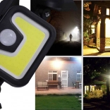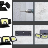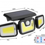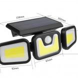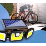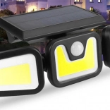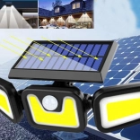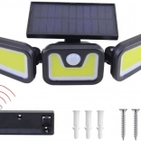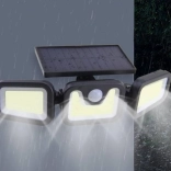 Zanesljiva sončna svetilka s tehnologijo COB/LED zagotavlja svetlo in varčno osvetlitev tam, kjer jo najbolj potrebujete. Vgrajen senzor gibanja in mraka samodejno aktivira luč le, ko je to potrebno, kar varčuje z energijo in podaljšuje življenjsko dobo. Trije popolnoma nastavljivi paneli omogočajo natančno usmerjanje svetlobe na želeno mesto.