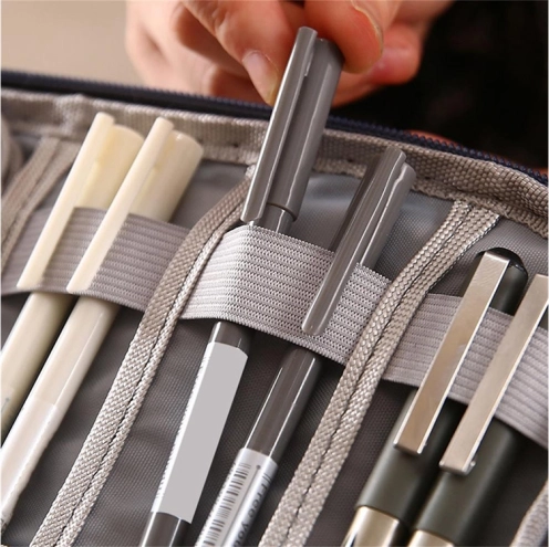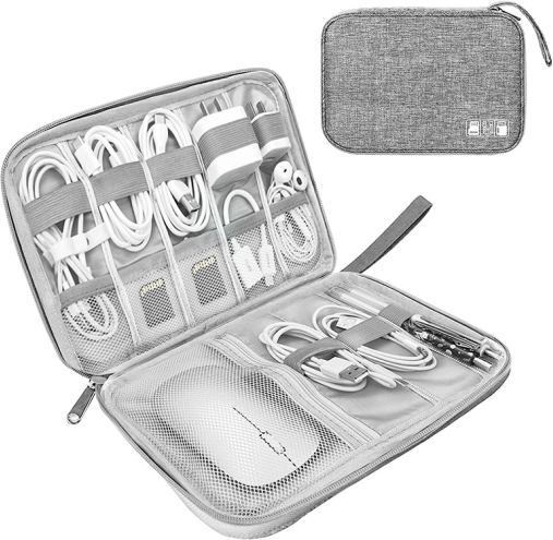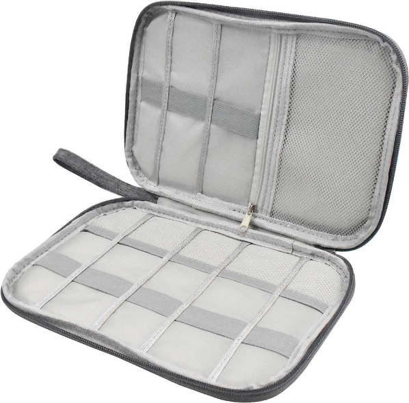 Ta praktični organizator za elektroniko pomaga ukrotiti kable, polnilnike, power banke in adapterje. Notranji sistem elastičnih trakov in mrežastih žepov vse drži trdno na mestu in pregledno organizirano. Kompaktne mere 24 × 17 × 3 cm zagotavljajo, da se prilega v nahrbtnik, torbo ali ročno prtljago.