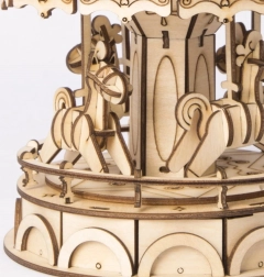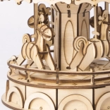 Mehanski vrtiljak je izdelan do najmanjše podrobnosti z mnogimi okrasnimi elementi in figurami konjev, ki dopolnjujejo celoten videz.