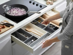 Različne velikosti predalčkov sprejmejo žlice, vilice, nože ter manjše kuhinjske pripomočke, da so vedno hitro pri roki.