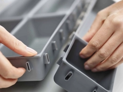 Komplet 10 medsebojno povezljivih posodic s kljukami vam omogoča, da predal sestavite povsem po meri in ima vsak kos pripomočka svoje mesto.