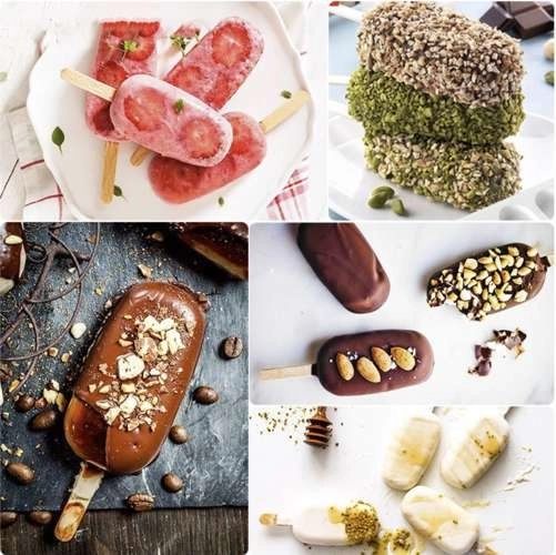 Štiri ločene komore omogočajo pripravo različnih okusov hkrati – od jogurtnih do sadnih ali sorbetovih. Zahvaljujoč odprtinam za palčke na koncu modela sta polnjenje in namestitev palčk hitra in čista. Paket vsebuje 50 lesenih palčk, zato lahko začnete takoj in vam bodo dolgo zadoščale.