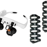 Komplet vsebuje 14 zamenljivih leč: 2x 15X, 2x 10X, 2x 7X, 2x 6X, 2x 5X, 2x 4X, 2x 3X, ki omogočajo 21 kombinacij povečav.