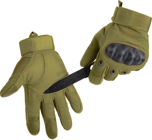 Univerzalne taktične rokavice TRIZAND v velikosti XL v odtenku kaki ponujajo zaščito členkov, močan oprijem in združljivost z zasloni na dotik. Zahvaljujoč zračnemu materialu, okrepljenim dlenem in nastavljivemu manšetnemu zapiranju na ježka odlično pristajajo, ščitijo pred nečistočami in so pripravljene na šport, aktivnosti na prostem in taktične naloge.