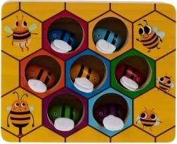 Vsaka čebelica ima svojo barvo in mesto v satovju. Otroci med igro naravno vadijo prepoznavanje barv, logiko in prostorsko zaznavanje.