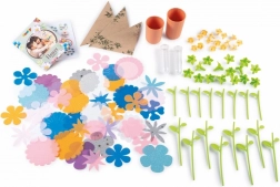 Stroj za izdelavo cvetja s 104 dodatki zagotavlja kreativno igro in bogato opremo. Vsebuje nalepke za dekoracijo in jasen vodič z navdihi. Cvetove je mogoče izdelati iz materialnih plošč, ki so predhodno perforirane za lažjo uporabo majhnega cvetličarja.