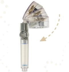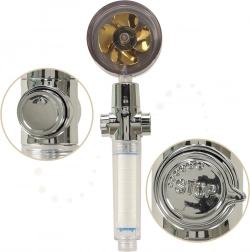 Tuš glava z zlatim turbinom je idealna rešitev za vsako moderno kopalnico. Zahvaljujoč velikemu številu majhnih odprtin in vgrajeni turbini izboljšuje tlak vode in hkrati varčuje s porabo vode in stroški računov. Notranji filter pomaga pri odpravljanju težav s trdo vodo, kar je koristno tako za vaše lase kot tudi za kožo.