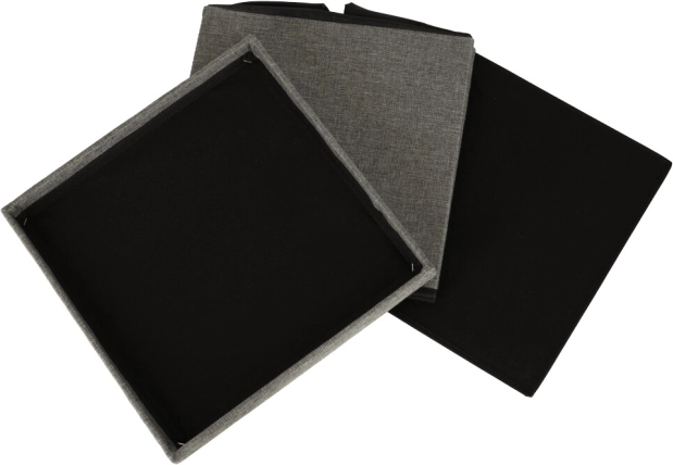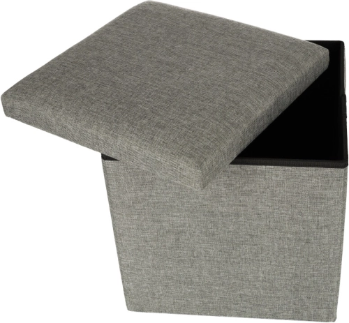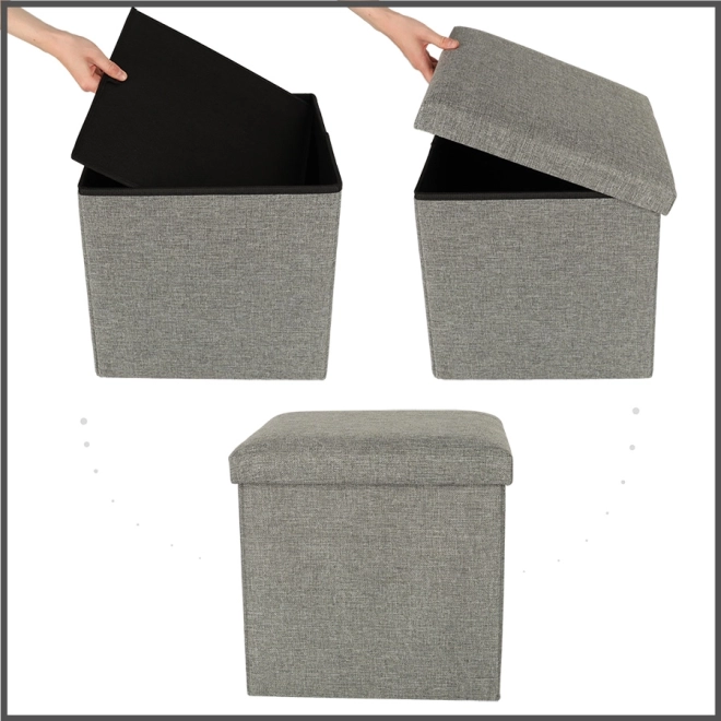 Siv zložljiv shranjevalni puf je idealni dodatek za vsako dnevno sobo, hodnik ali otroško sobo. Ponuja polnilo iz pene, kar ga naredi udobnega za sedenje tudi dolge ure. Poleg udobja prinaša tudi domiseln shranjevalni prostor za različne malenkosti, igrače, čevlje ali odeje.