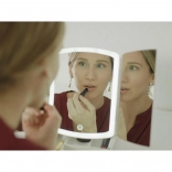 Vgrajeno majhno ogledalo s petkratno povečavo vam olajša natančno delo pri urejanju obrvi, črt ali vstavljanju kontaktnih leč.