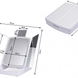 Podstavek služi kot organizer s predalčki za čopiče, svinčnike in drobne dodatke, zato imate vse pregledno na enem mestu. Napajanje je prilagodljivo – bodisi prek USB (kabel priložen) bodisi z 4× AAA baterijami, kar boste cenili doma in na poti.