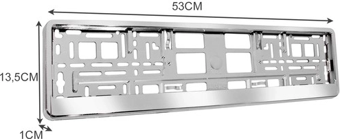 Vsebina paketa: 2x okvir za registrske tablice z dimenzijami 53 x 13,5 x 1 cm in težo 381 g vsak, skupna teža paketa 538 g.