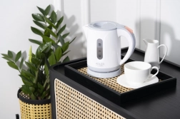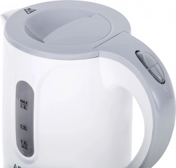 Klasičen grelnik vode s prostornino 0,8 litra, primeren za vsako kuhinjo, pisarno ali študentski dom. Varnost zagotavlja zaščita, ki preprečuje vklop praznega grelnika, ter samodejni izklop po zavretju vode. Grelnik je opremljen s filtrom za zadrževanje vodnega kamna, ki izboljša okus in kakovost vode. Uporabnost povečujeta stabilno podnožje in lahko berljiv kazalnik nivoja vode. Zelo udoben za uporabo zaradi ravnega dna in vrtljivega podstavka. Grelnik se ponaša z varčno močjo 850 W. OPIS: Vsebina kompleta |