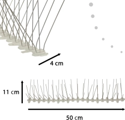 Gosto razporejeni nerjaveči konici ustvarijo neprijetno oviro za golobe in druge ptice, ne da bi jih poškodovali. Idealno za mesta in družinske hiše.