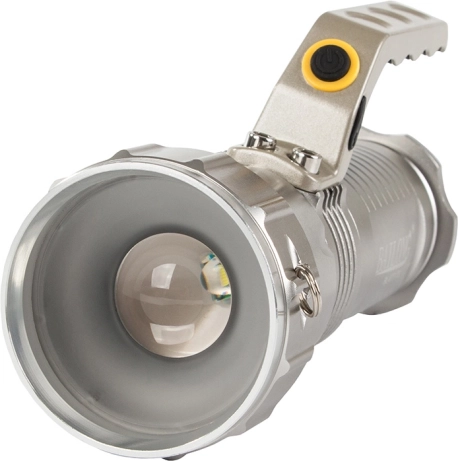 Lithium-ion baterije 18650 zagotavljajo dolgotrajno delovanje in svetilka ima gumirano pokrovko za polnjenje.