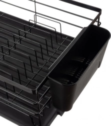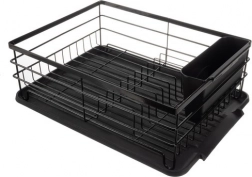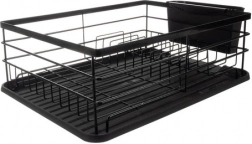 Stilski in praktičen odcejalnik za posodo Ruhhy v elegantni črni barvi je odlična izbira za sodobne kuhinje v loftovskem duhu. Konstrukcija iz ogljikovega jekla je trdna in odporna proti vlagi ter poškodbam, medtem ko plastični dodatki iz PP in smole olajšajo vzdrževanje in vsakodnevno uporabo.