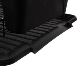 Pameten odtočni pladenj s bočnim odtokom vodi vodo neposredno v korito, zato se na delovni površini ne zadržujejo lužice. Odstranljivo košarico za pribor lahko po potrebi obesite na stranske prečke, da je sušenje pribora pregledno in higiensko. Praktična razporeditev poskrbi za urejeno sušenje krožnikov, skled in skodelic.