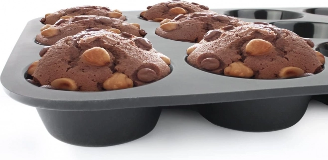 Odkrijte čar peke s sodobnim pekačem za muffine, ki je opremljen z 12 barvnimi silikonskimi modelčki. Vsak modelček je izdelan iz visokokakovostnega teflona, ki zagotavlja enakomerno porazdelitev toplote in neoprijemljivo površino za enostavno odstranitev sladic. Silikonski modelčki so večkrat uporabni, primerni za pomivalne stroje, mikrovalovke ali zamrzovalnike.