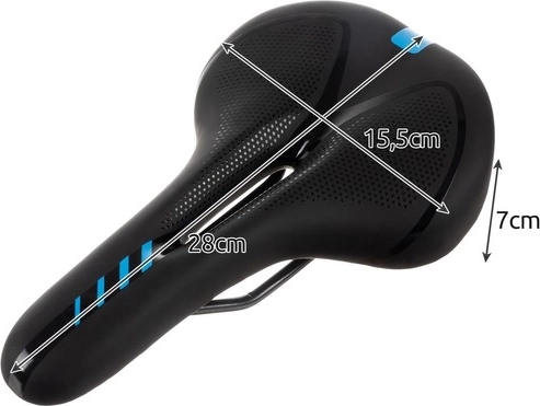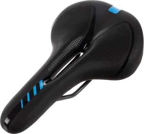 Mehko in udobno: Sedlo je izdelano iz mehke poliuretanske pene, kar zagotavlja udobje med vožnjo in profilirana oblika nudi udobje. Ta dizajn podpira pravilno držo telesa med vožnjo s kolesom, kar je pomembno pri daljših izletih.