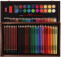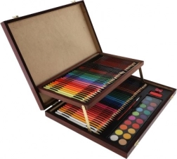 Kreativni umetniški set je popolna rešitev za vse, ki imajo radi ustvarjanje. Zaradi praktičnega lesenega ohišja so vsi pripomočki pregledno organizirani in vedno pripravljeni za uporabo.