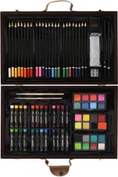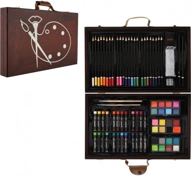 Ta kreativni set je idealna re61itev za vse male umetnike. Vsebuje skupno 79 kosov osnovnih slikarskih potreb610d6d, skrbno razporejenih v prakti0dnem lesenem kov0deku.