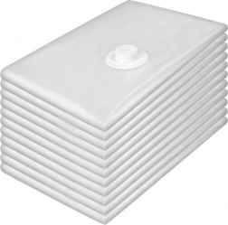 Set vsebuje 10 prozornih vrečk 50 × 70 cm in praktično ročno črpalko z navojem za udobno izsesavanje. Vrečke so primerne za oblačila, puloverje, jakne, posteljnino in tekstil, uporabljate jih lahko večkrat.