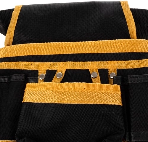 Pas vsebuje različne vrste žepov in zank, ki omogočajo prenašanje in shranjevanje različnih orodij, vključno z električnimi orodji.
