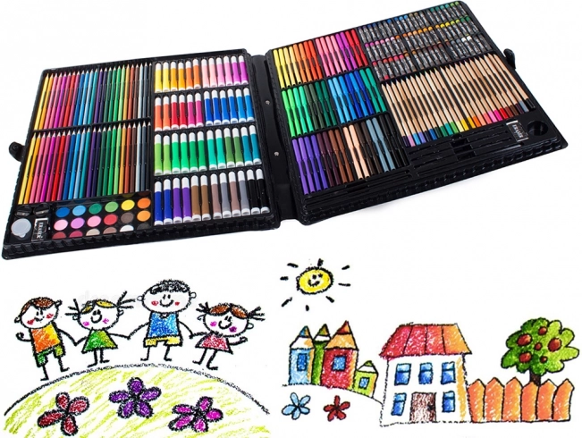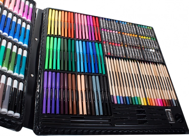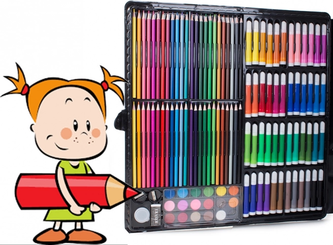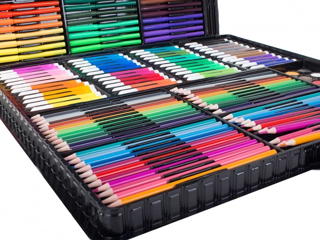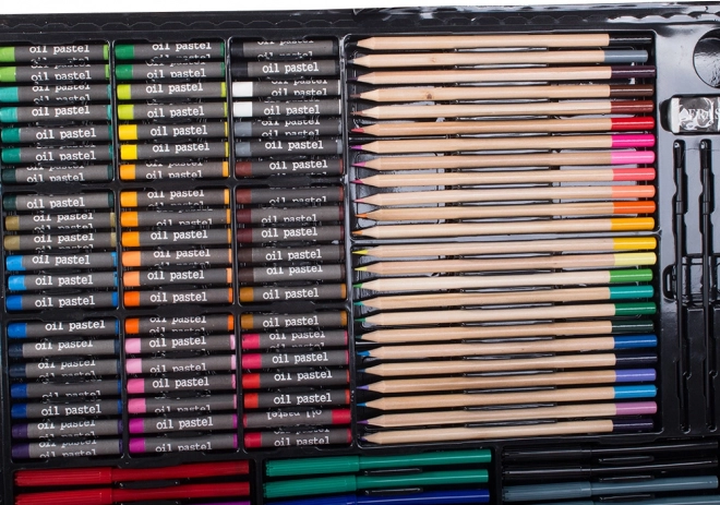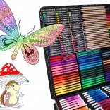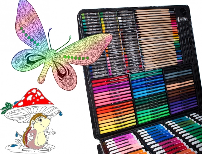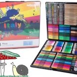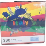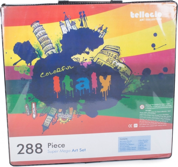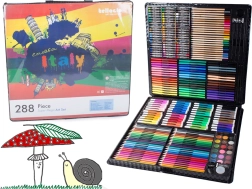 Vsebuje vse potrebno za razvoj ustvarjalnosti: barvice, flomastre, oljne pastele in akvarelne barve – skupaj 288 elementov.