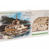 Ta podrobno zasnovan vlačilec UGEARS je sestavljen iz 169 z laserjem izrezanih delov iz kakovostne vezane plošče. Dele preprosto iztisnete iz plošč in povežete brez lepila ali posebnega orodja – sledite priloženim navodilom. Model poganja prožen gumijast motor, zobniki in nihalo, ki zagotavljajo gladko in avtentično gibanje.