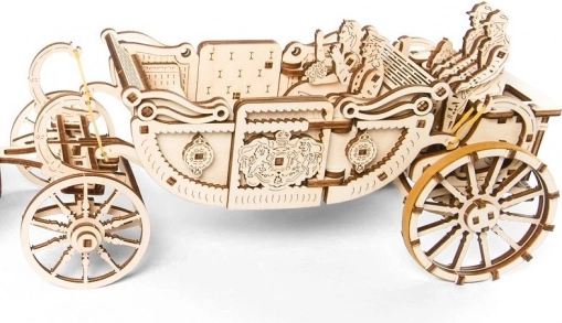 Elegantna sestavljanka kraljevske kočije UGEARS prinaša vzdušje slavnostnih sprevodov in zgodovinske rokodelske lepote. Zahvaljujoč leseni konstrukciji iz kakovostne vezane plošče, podrobnim detajlom in preudarno zasnovanemu navijalnemu mehanizmu dobite model, ki ne le odlično izgleda, temveč tudi zares vozi.