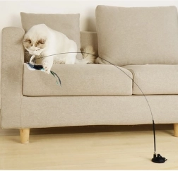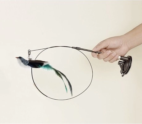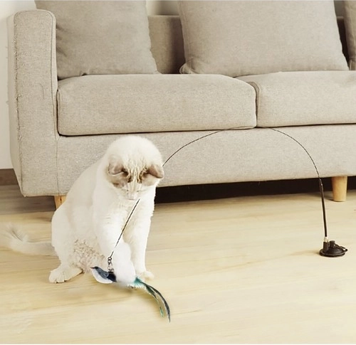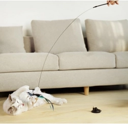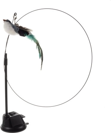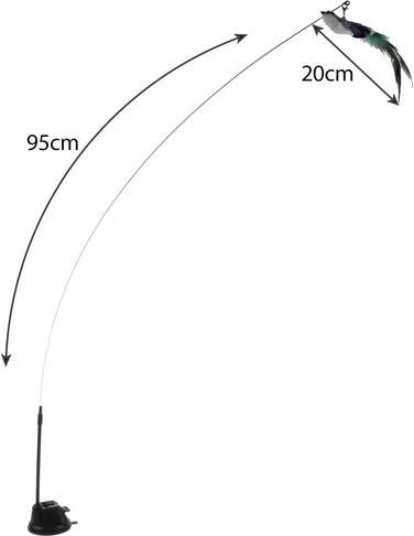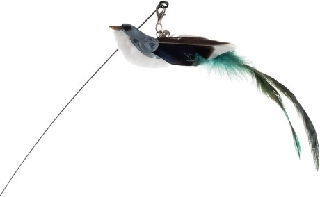 Dolga elastična palica s privlačnimi elementi na koncu pritegne pozornost mačke in jo spodbuja k skokom ter lovljenju. Ptiček, okrašen z dolgim perjem in nežnim zvončkom, poveča privlačnost.