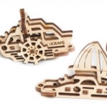 Komplet štirih mini modelov Ugears prinaša sproščeno ustvarjanje in igrive mehanske funkcije v žepnem formatu. Zahvaljujoč zanki jih zlahka spremenite v izvirne obeske za ključe ali okras nahrbtnika. Vsako plovilo ima svoj preprost zobniški mehanizem, ki razveseli v kratkih trenutkih odmora.