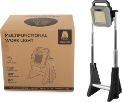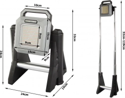 Reflektor se lahko vrti za 360 stopinj, kar omogoča optimalno postavitev in kot osvetlitve. Opremljen je z funkcijo powerbank za polnjenje mobilnih naprav in LED indikatorjem stanja napolnjenosti baterije.