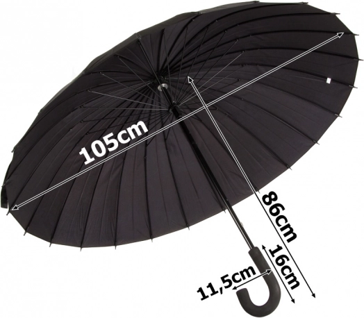 Iščete dežnik, ki prenese močan dež in sunke vetra, hkrati pa izgleda elegantno? Ta velik črn dežnik združuje kakovostno izdelavo, vzdržljivo konstrukcijo in brezčasen dizajn. Zahvaljujoč 24 prožnim krakom iz polikarbonatnih vlaken je stabilen in zanesljiv.