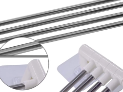 Kombinacija kovinskih palic in čvrste plastične osnove zagotavlja stabilnost in dolgo življenjsko dobo, hkrati pa zasede minimalno prostora.