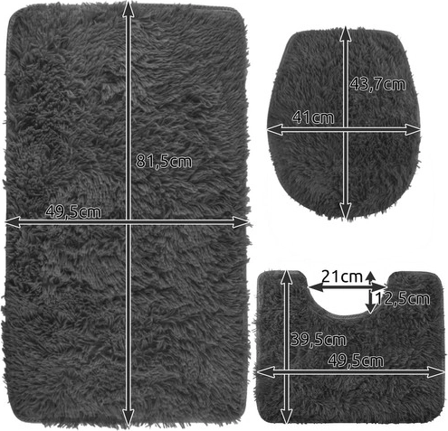 - 3-delni komplet: pravokotnik za območje kadi/prhe, konturirana preproga za WC, prevleka za pokrov toalete