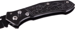 Ta taktični zložljiv nož je idealen spremljevalec za kampiranje, pohodništvo, tabore in vsakodnevno nošenje. Trdno jekleno rezilo zagotavlja zanesljiv rez, medtem ko zaporalo rezila prinaša več varnosti pri prenašanju in uporabi. Okrašen ročaj ne le odlično izgleda, temveč tudi izvrstno sede v dlan.