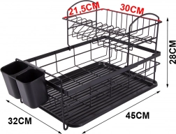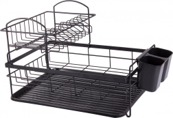 Stojalo za odcejevanje posode ima sodoben loft dizajn, zato se poda v vsako kuhinjo. Kakovosten praškasti premaz zagotavlja odpornost proti poškodbam in vlagi.