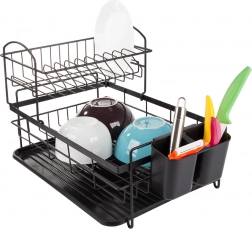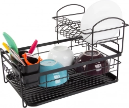 Dvonadstropna konstrukcija stojala za odcejevanje posode maksimira prostor za sušenje. Zgornji nivo sprejme do 11 krožnikov, medtem ko spodnji del nudi dovolj prostora za skodelice in sklede. Poleg tega je opremljen z odstranljivim držalom za jedilni pribor, ki ga lahko preprosto premaknete glede na svoje potrebe.