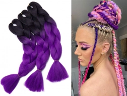 Ta sijajni vijoličasti ombre slog je idealen za izvirne pričeske, ki jih lahko spremenite glede na priložnost. Ustvarite osupljiv videz na festivalu, karnevalu ali drugi prireditvi s temi univerzalnimi kitkami.