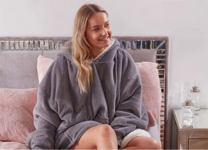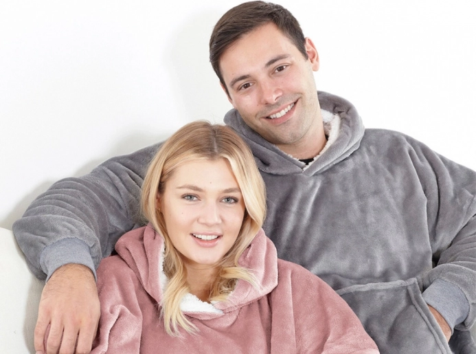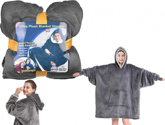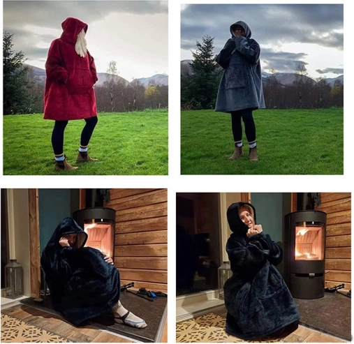 Uživajte v vrhunskem udobju s tem toplim oversize odeja-puloverjem. Idealen za hladne večere doma, saj zagotavlja toploto in svobodo gibanja zahvaljujoč širokim rokavom.