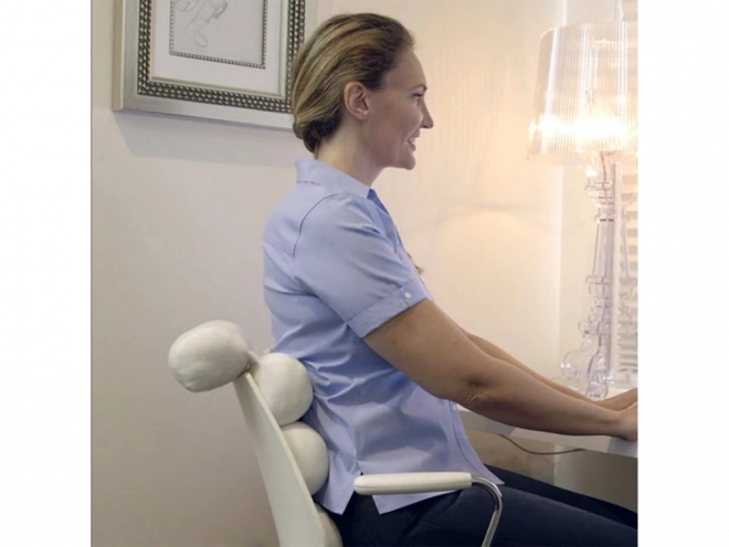 Pripnite vzglavnik na naslonjalo stola in ledvenemu delu zagotovite ciljno oporo. Odličen za delo za mizo in dolgotrajno sedenje, saj pomaga zmanjšati utrujenost hrbta.