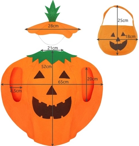 Predstavljamo popoln otroški bučni kostum za noč čarovnic. Ta set je univerzalen zaradi svojih dimenzij in bo brez težav ustrezal tako mlajšim kot starejšim otrokom. Je idealen za praznične priložnosti in bo pomiril vsakogar zaradi svoje udobnosti.