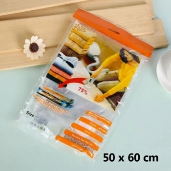 Praktična vakuumska vrečka velikosti 50 × 60 cm prihrani prostor in ščiti vaše stvari. Z izsesavanjem zraka se volumen občutno zmanjša, shranjeni predmeti pa so varni pred prahom, vlago, plesnijo in neprijetnimi vonjavami. Idealno za shranjevanje, selitev in potovanja.