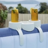 Pameten dodatek za sproščene trenutke v masažni kadi: dvojno držalo za pijače z osrednjim pladnjem. Ponuja dve okrogli odlagalni mesti za kozarce, pločevinke ali steklenice ter na sredini praktičen prostor za drobnarije – očala, pametni telefon ali prigrizke. Odporna zasnova iz PP/ABS materiala je pripravljena na vodo in sonce.