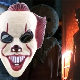Izrazite poteze, ostri zobje in kontrastni rdeče-beli detajli ustvarjajo srhljiv vtis kot v filmu IT.