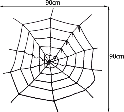 Umetna črna halloweenska pajčevina velikosti 90 × 90 cm v hipu ustvari strašljivo vzdušje. Lahka, enostavna namestitev in vsestranska uporaba na steni, oknu, stropu in vratih. Kakovosten tekstilni material za večkratno uporabo.